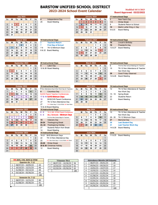 Barstow School Calendar 2025 2025 Academic Calendar *Modified* Barstow Unified School : Middelbare scholen worstelen met steeds heftigere incidenten. De Onderwijsinspectie ontvangt het hoogste aantal veiligheidsmeldingen ooit en verhoogt het toezicht op scholen. . Leerlingen in groep 8 krijgen het schooladvies voor de middelbare school. De school brengt eerst een voorlopig advies uit. Vervolgens maken de leerlingen de doorstroomtoets. Uit de toets volgt het .